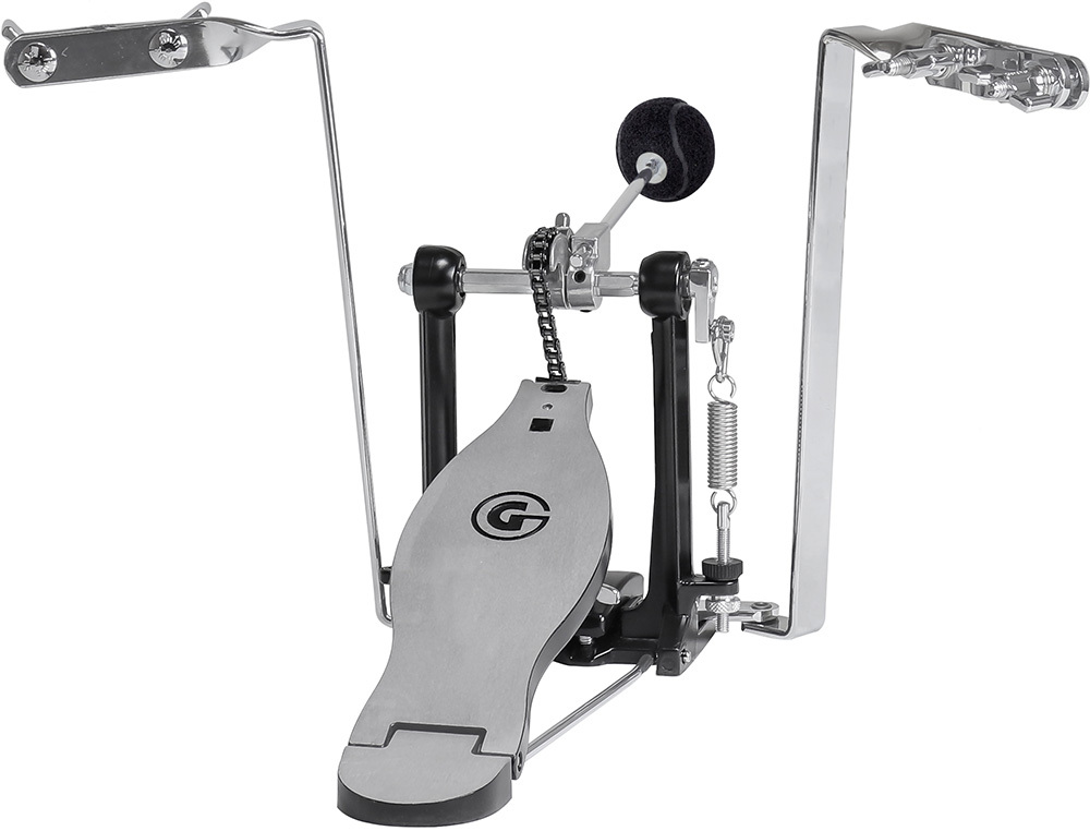 Turn your floor tom into a bass drum in the upright position for situations where space and volume is an issue. The pedal mount is equipped with two-swiveling grabber arms that connect and lock to the floor tom legs, allowing for easy positioning under the floor tom. The single chain cocktail pedal has an inverted cam for bottom head play.