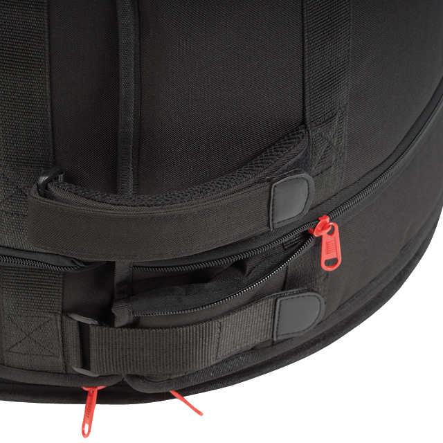 Large durable zippers with big tabs finished in Gibraltar Red, easy to see and adds subtle style.