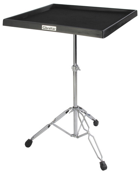 Percussion table on Double-Braced Stand. 24" x 24" padded fiberglass percussion table with two-tier double brace stand.