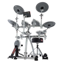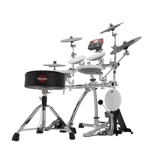 Unique "all chrome" design has two horizontal mounting bars for mounting electronic drum pads, cymbal pad arms and controller module