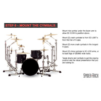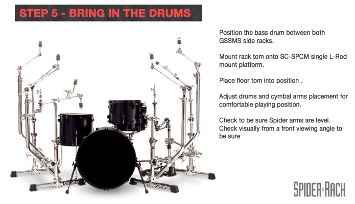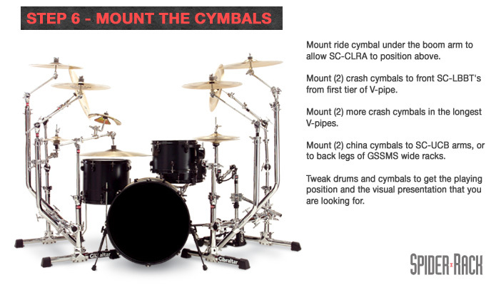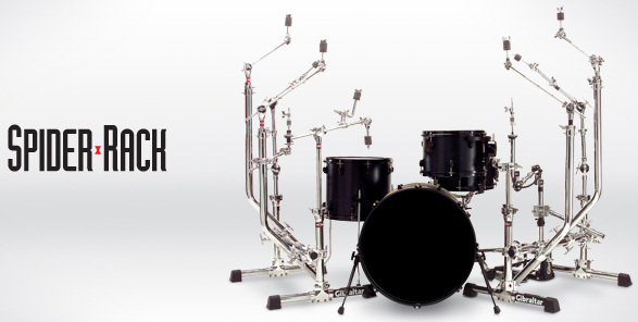 The Spider Rack can be used with the selection of drum, accessory & cymbal mountings as shown or customized to suit the players preference.