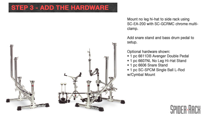 Optional Hardware for Spider Rack set up: 1 x GI6611DB Avenger Double Pedal