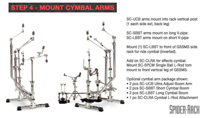 Spider Rack GSCYMARM Cymbal Arm Package Parts Listing:
