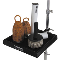 Attaches to a cymbal stand or rack bar. 12" x 12" with 1" high borders and padded surfaces.