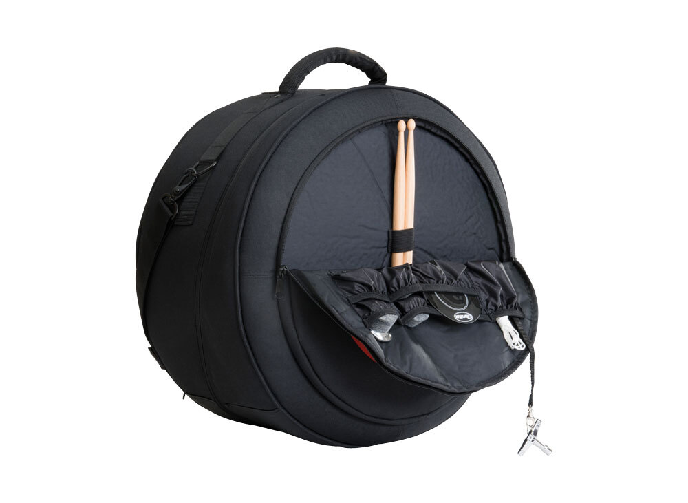 - Accessory pockets to fit; spare snare drum head, 1pr of sticks, small accessories and parts for snare and drum set