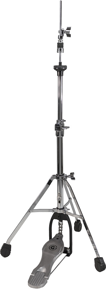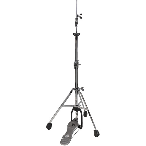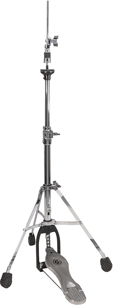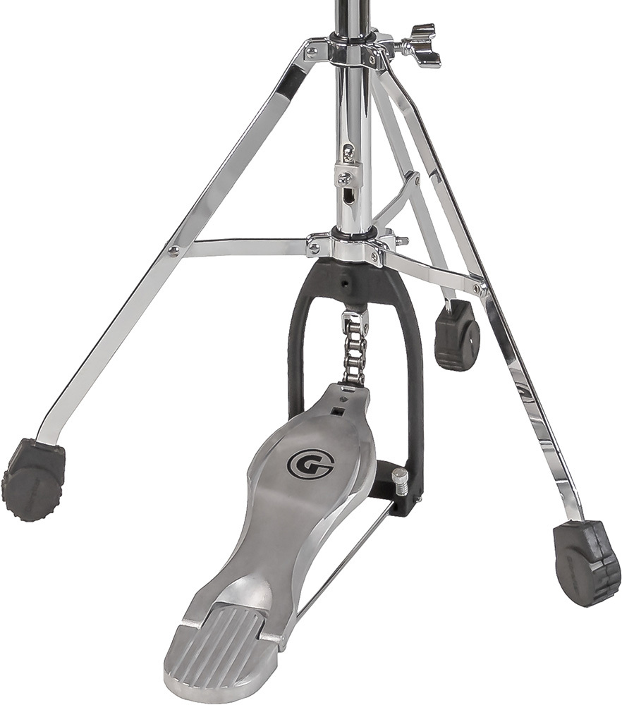 The fast touch pedal board controls the action of a standard chain drive mechanism, with spring tension adjustment available. The height adjustment collar is lined with a nylon bushing to prevent any metal to metal contact. The lower tripod height allows for easy break down and storage without disassembling. Attach and remove hi hats quick and easy with the Gibraltar Quick Release Hi Hat Clutch.
