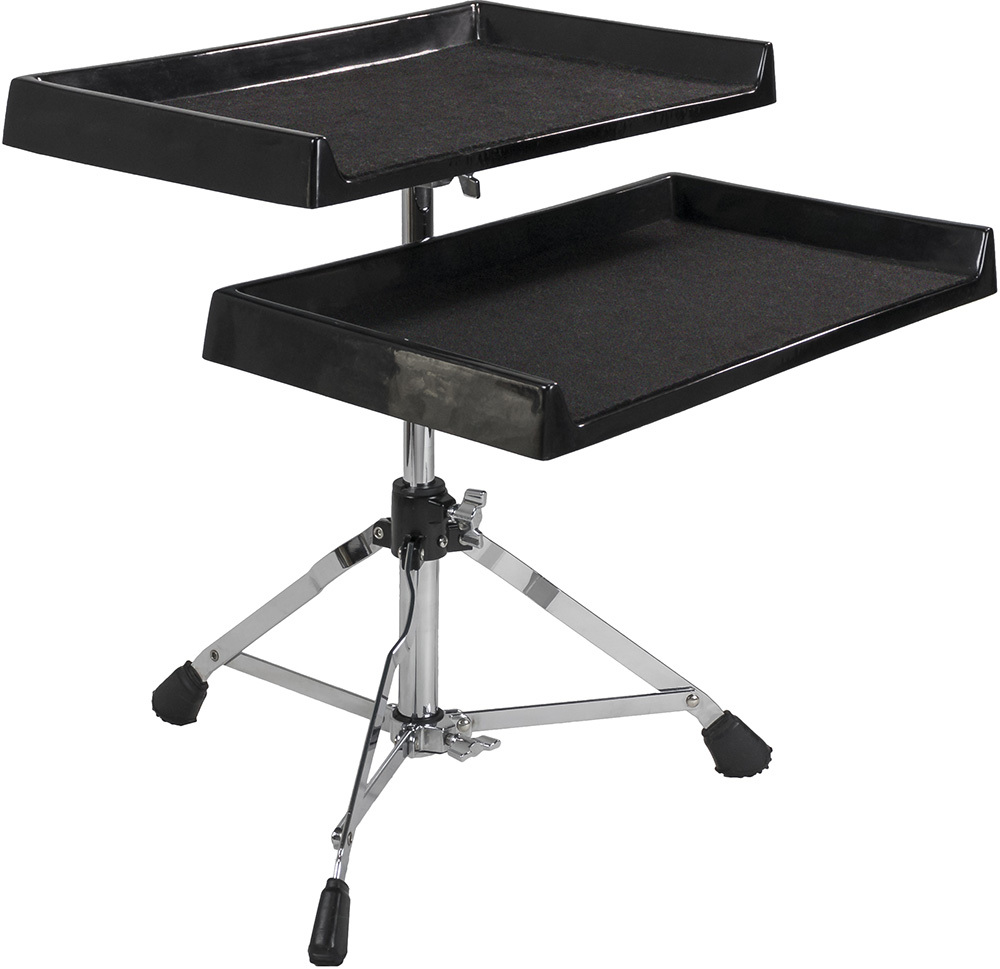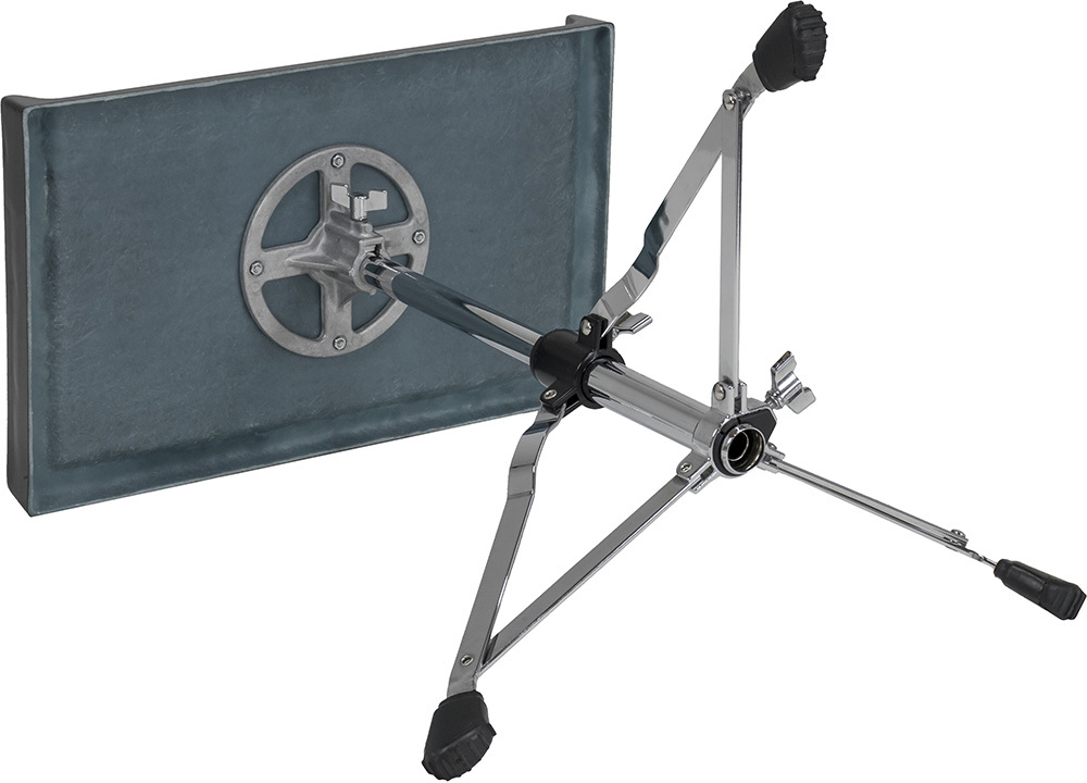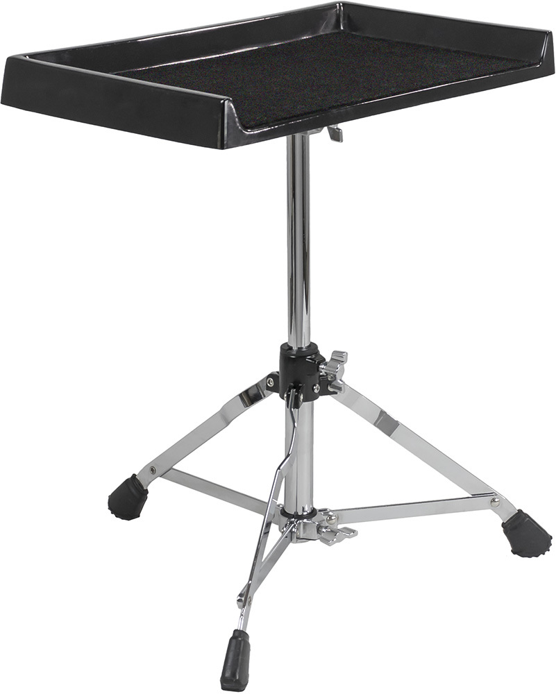 This professional level table top is made of fiberglass, which offers maximum durability, without adding weight. Black soft felt lines the inner perimeter of the table to help protect your things. The player's side of the table is open with no lip to allow for any oversized mixers or percussion accessories. The low profile light weight tripod offers 8" of height adjustability from 14.5" to 22.5" and allows you to place your side kick where you need it, discrete and convenient.