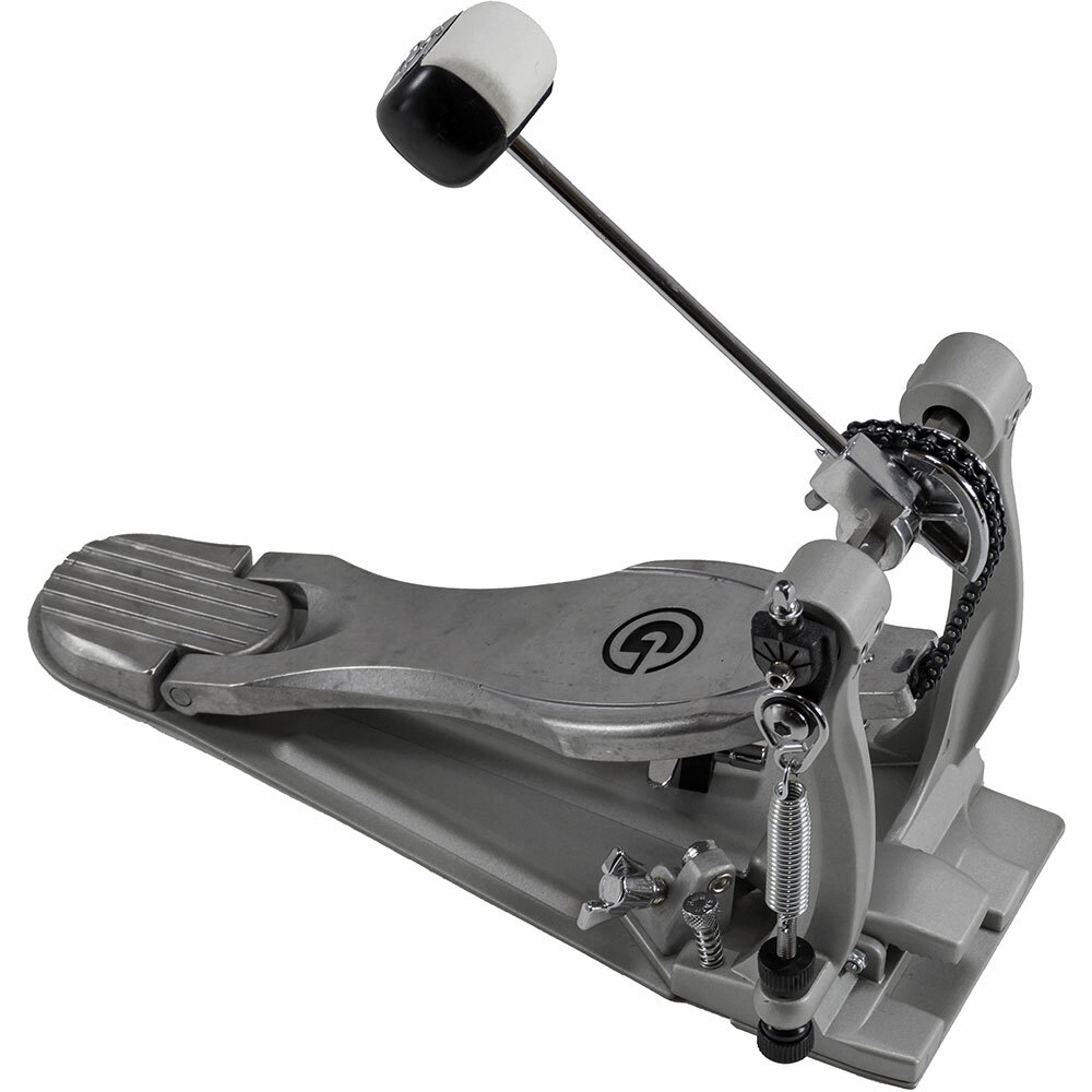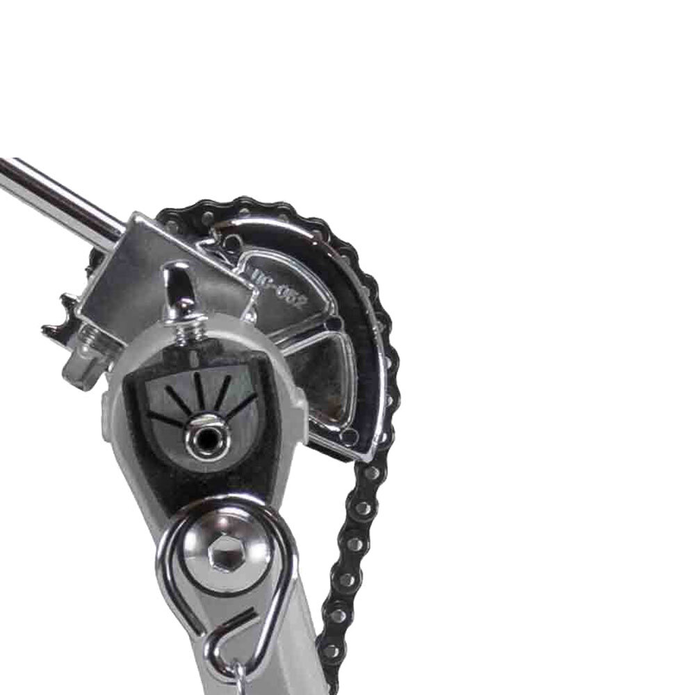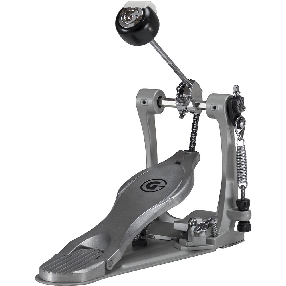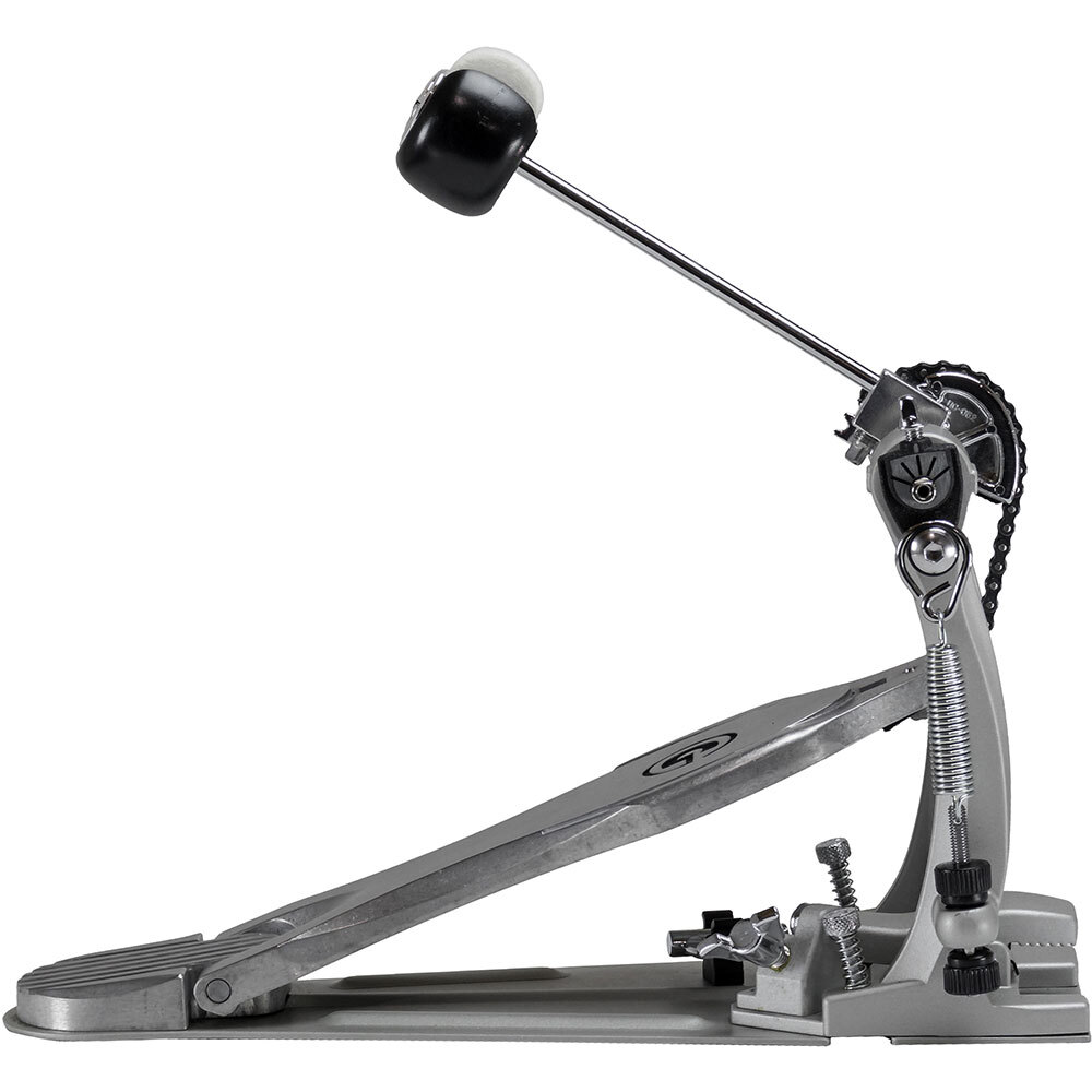 This simplistic pedal is crafted with a sleek, curved, G Class pillar style frame. Equipped with a single point beater adjustment for easy beater placement, and a patented spring rocker arm. The single chain cam drive offers the player speed and agility with ease of play for both master and slave pedals. The spring is silenced by a felt silencer to keep unwanted noise from being present during recording. Add and remove the pedal from the bass drum easily with Gibraltar's side mount hoop clamp.