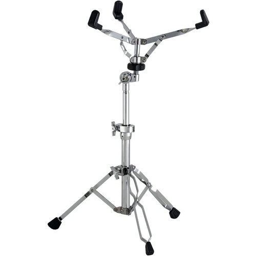 The Rock snare stand was constructed for durability from the ground up. The double braced base utilizes a 1" base tube with a hinged height adjustment collar. The upper tube has a 3/4" diameter and is fitted with a geared basket tilter.