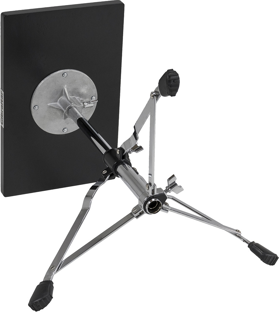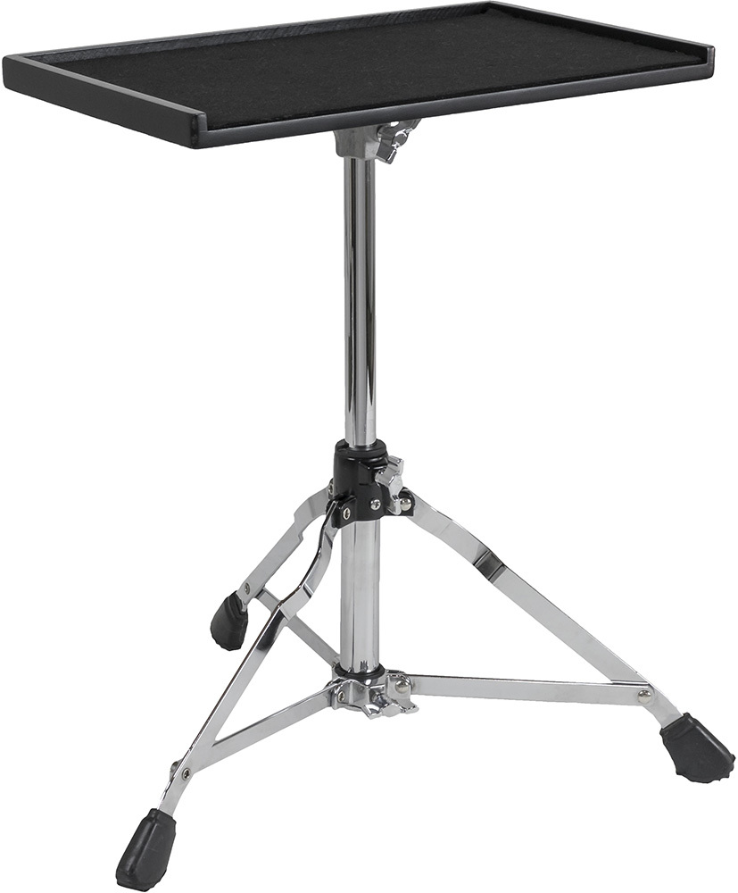 The G-SES Gibraltar Sidekick Essentials Station is a slim 16" x 10" table mounted onto a low base tripod stand designed to support your mixer, electronics, or any essentials a drummer may have. The wood table top is lined with soft black felt to protect your things. There is a protective edge lining three sides to prevent slippage but player's side is open to allow for oversized mixers or percussion accessories.
