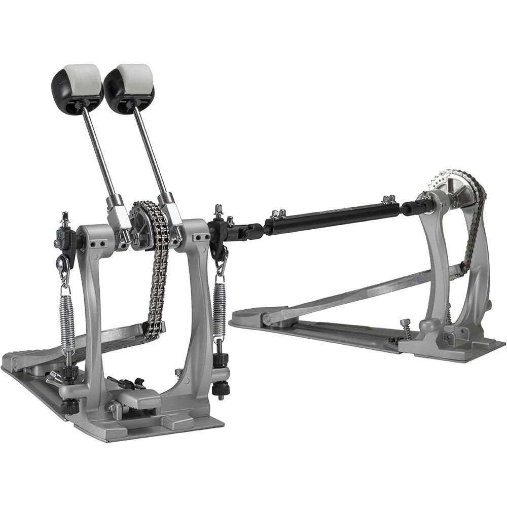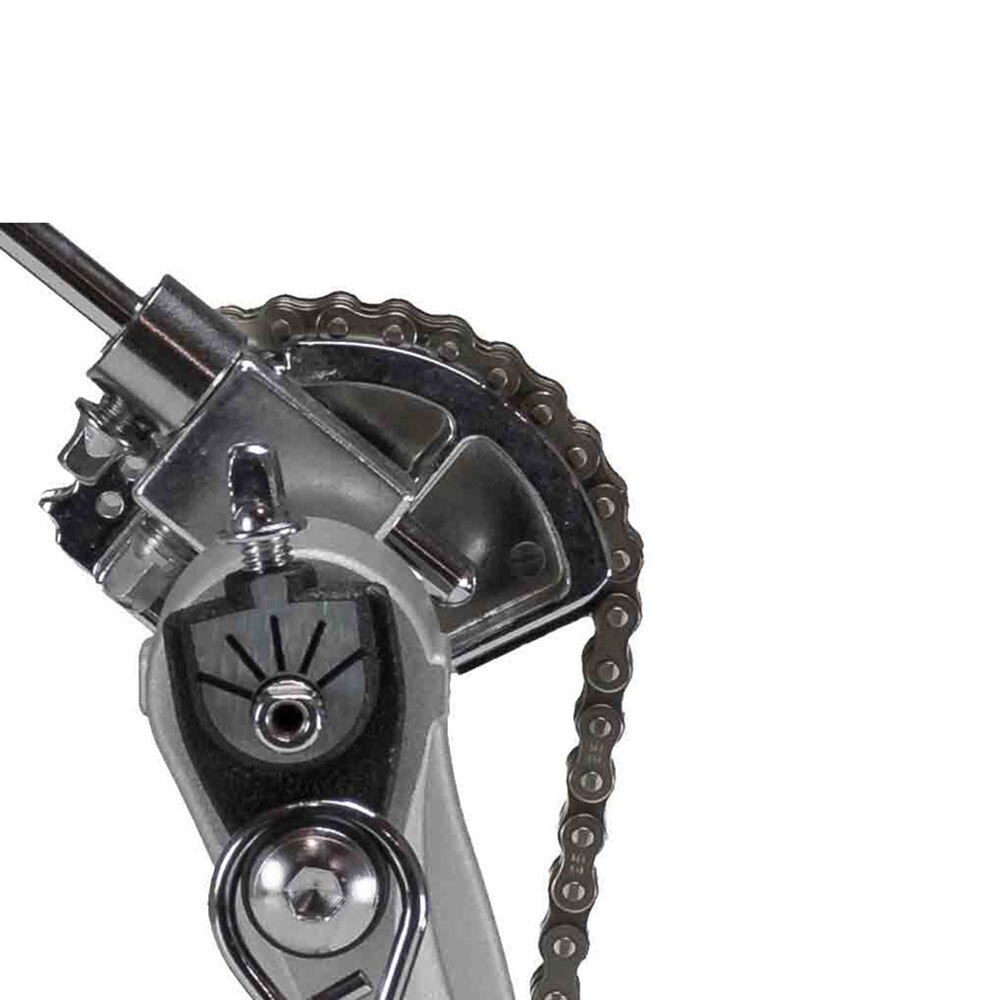 This rock solid pedal is crafted with a sleek, curved, G Class pillar style frame. Equipped with a single point beater adjustment for easy beater placement, and a patented spring rocker arm. The dual chain cam drive offers the player power performance when needed to drive the groove for both master and slave pedals.