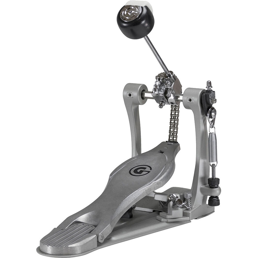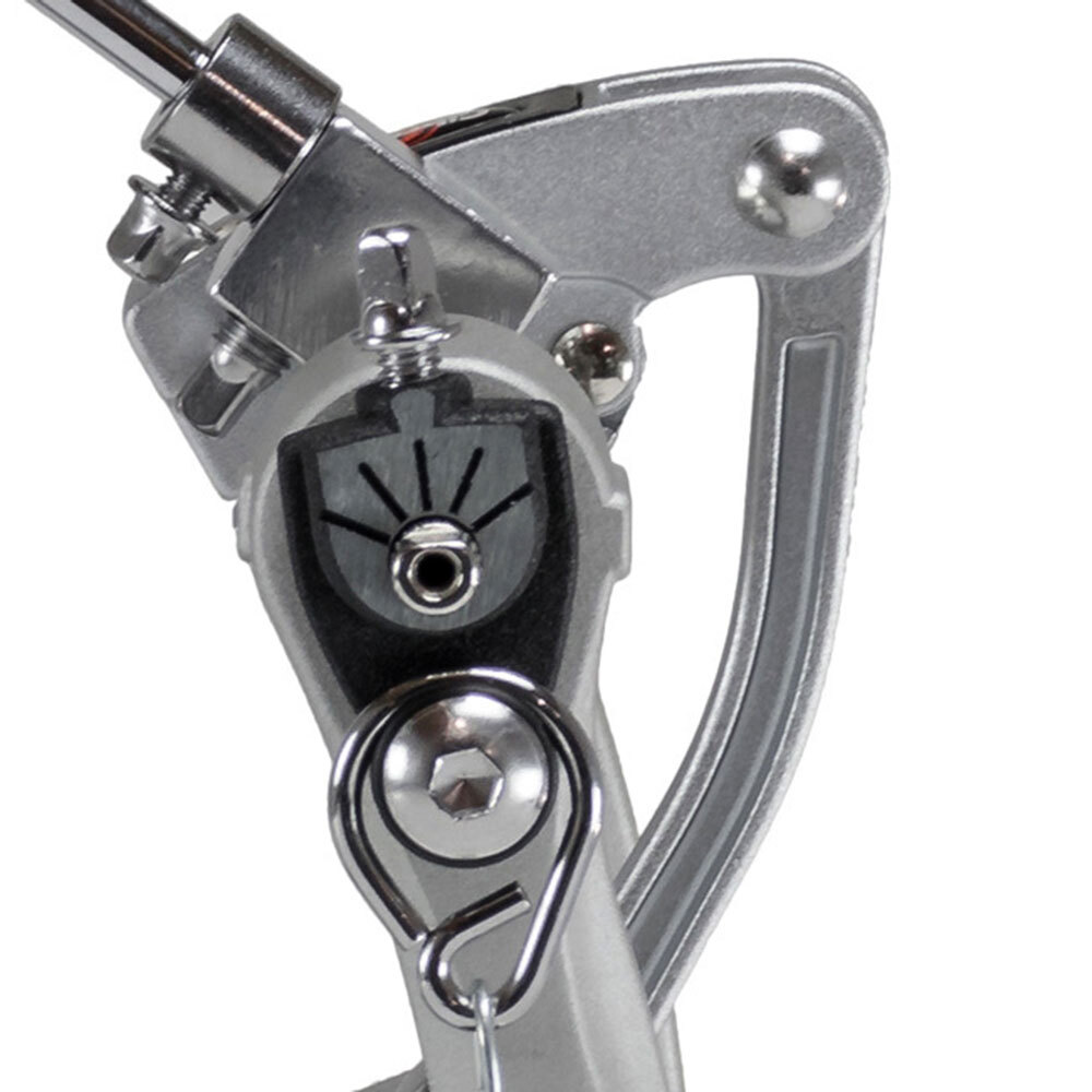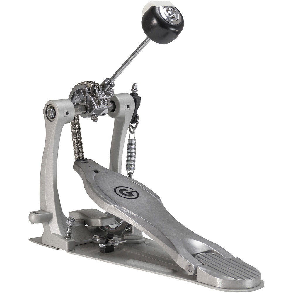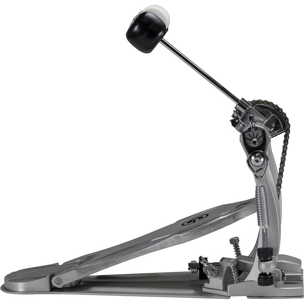 This rock-solid pedal is crafted with a sleek, curved, G Class pillar-style frame. Equipped with a single-point beater adjustment for easy beater placement and a patented spring rocker arm. The dual chain cam drive offers the player power performance when needed to drive the groove. A felt silencer silences the spring to keep unwanted noise from being present during recording. Add and remove the pedal from the bass drum easily with Gibraltar's side mount hoop clamp.