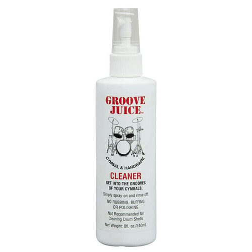 Groove Juice Cymbal Cleaner is the original spray on rinse off cymbal cleaner an easy to use no mess cymbal cleaner.