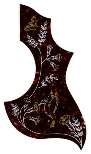 Pickguard with adhesive backing for acoustic guitars in Shell with Hummingbird Design.