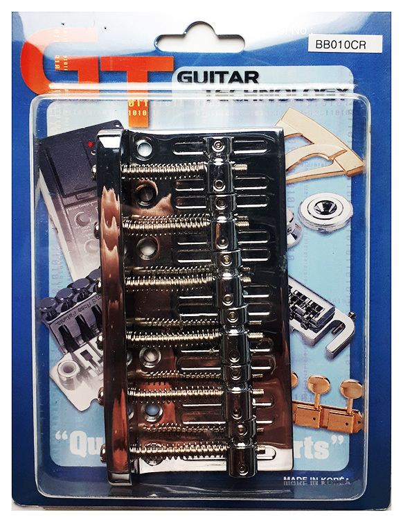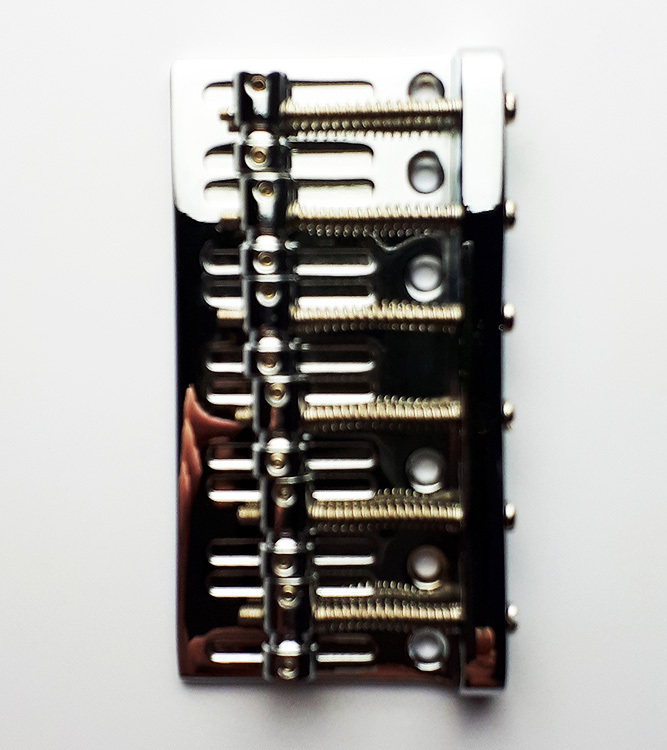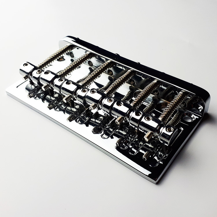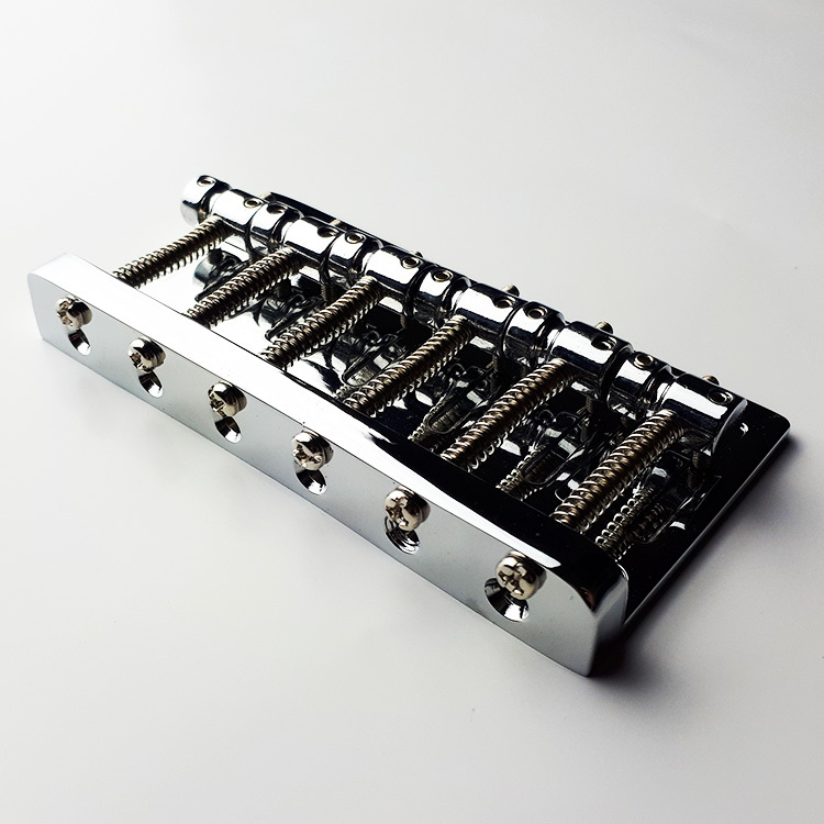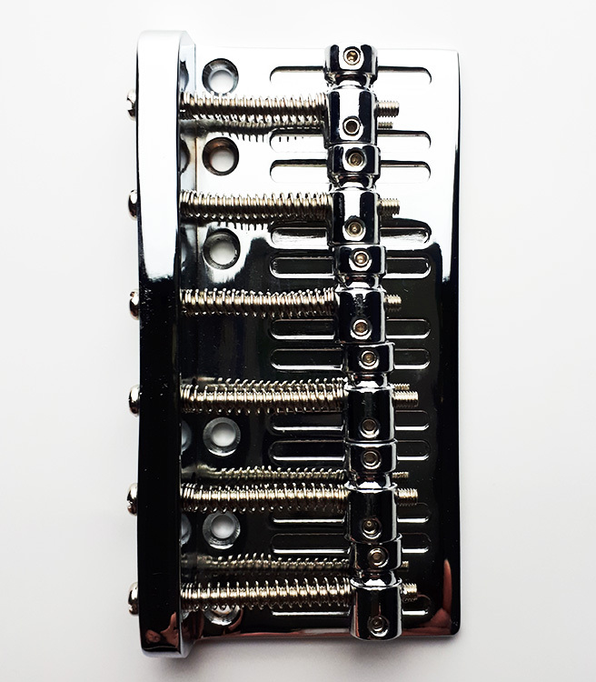 GT Bass Bridge with Brass Saddles in Chrome Finish (6-String) with 17mm string spacing.