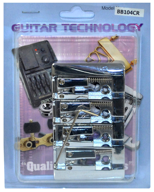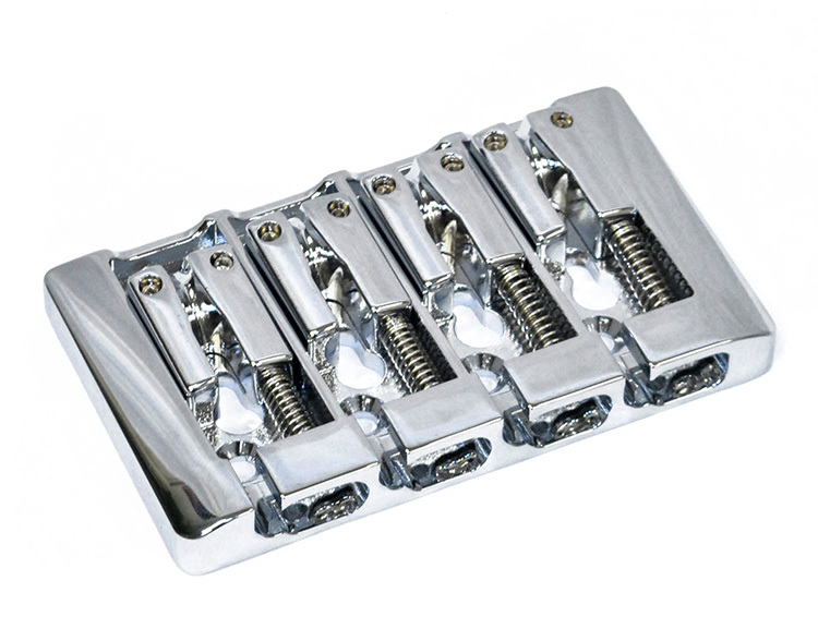 GT Bass Bridge with Zinc Saddles in Chrome Finish (4-String) with 19mm string spacing. Pre Radiused bass plate for more precise action adjustment. Strings-thru the bridge combined use.