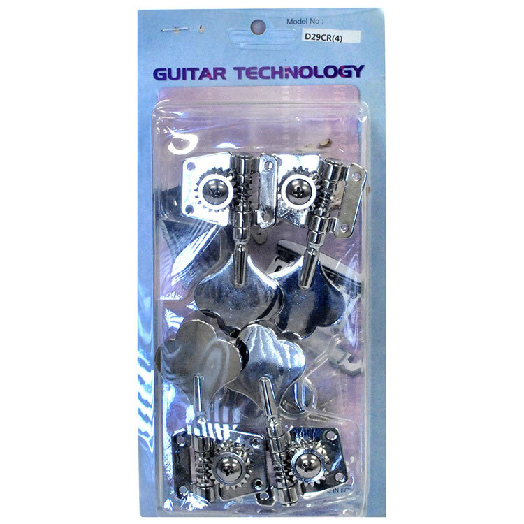GT Electric Bass Guitar Open Geared Tuning Machines in Chrome Finish with Chrome Clover Style Buttons (4-Inline)