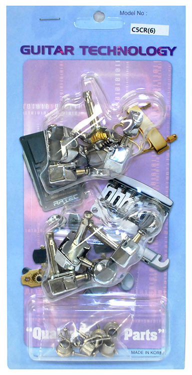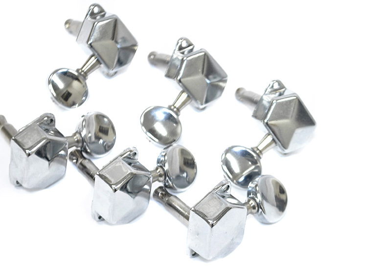 GT Electric Guitar Covered Tuning Machines in Chrome Finish with Oval Chrome Buttons (6-inline)