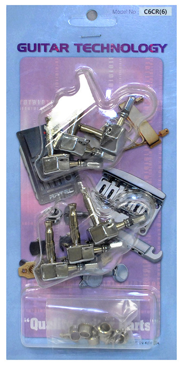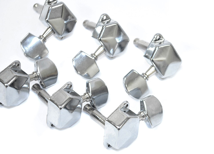 GT Electric Guitar Covered Tuning Machines in Chrome Finish with Traditional Chrome Buttons (6-inline)
