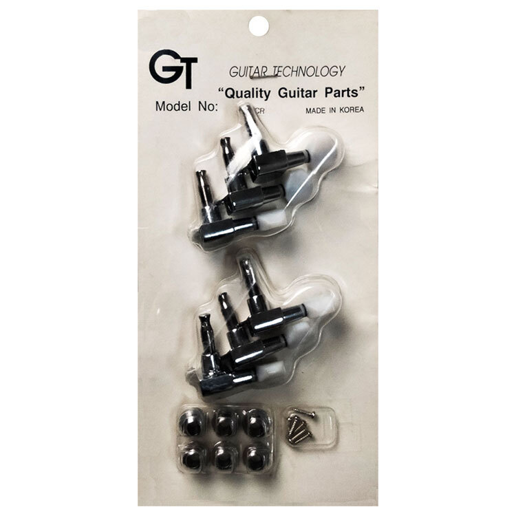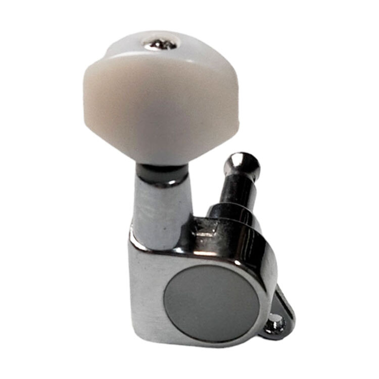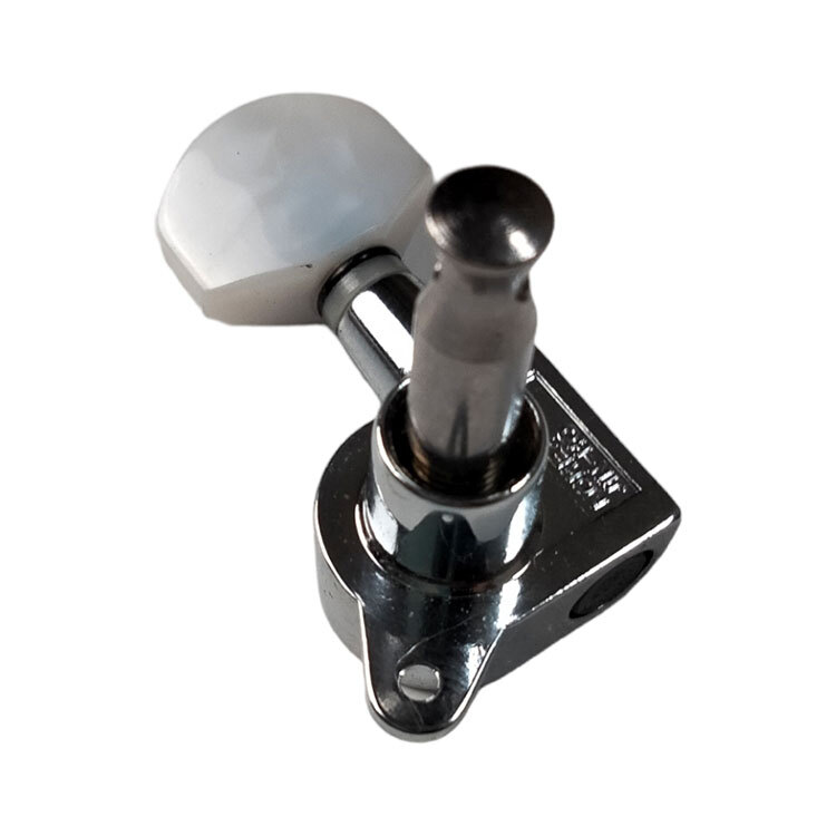GT Electric Guitar Sealed Tuning Machines in Chrome Finish with Traditional White Pearl Buttons (6-inline)