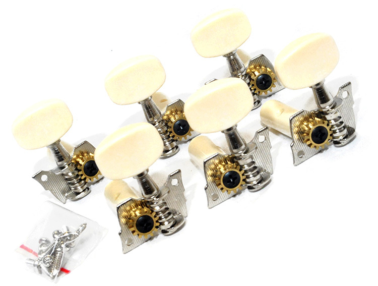 GT LA Series Classical Guitar Tuning Machines in Nickel Finish with White Buttons (3+3)