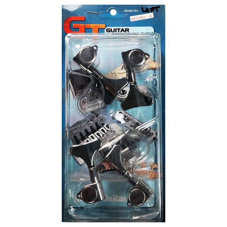GT Left-Handed Electric Bass Guitar Sealed Tuning Machines in Chrome Finish with Chrome Traditional Buttons (4-Inline)