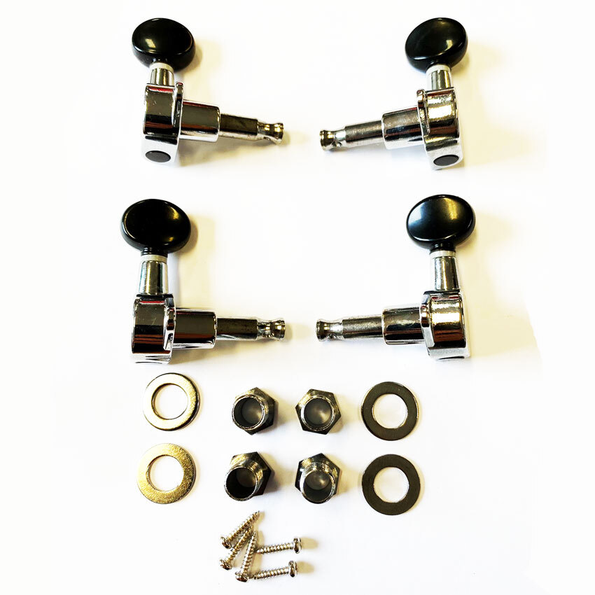 GT Ukulele Sealed Tuning Machines in Chrome Finish with Black Round Buttons (Set of 4)