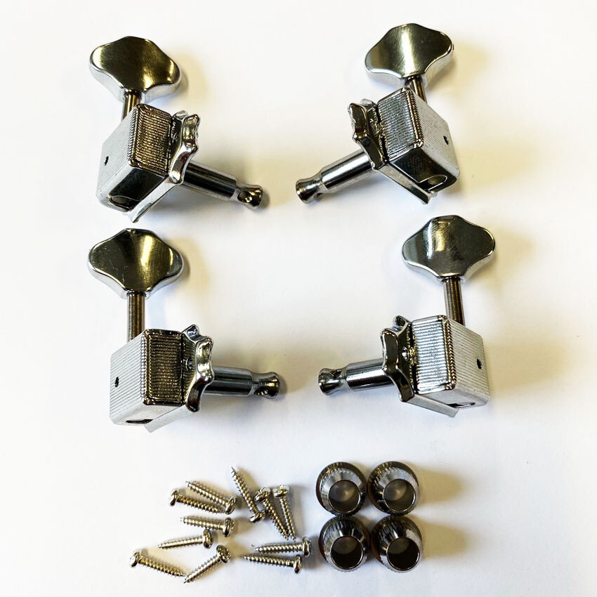 GT Vintage Covered Ukulele Tuning Machines in Nickel Finish with Nickel Butterbean Style Buttons (Set of 4)
