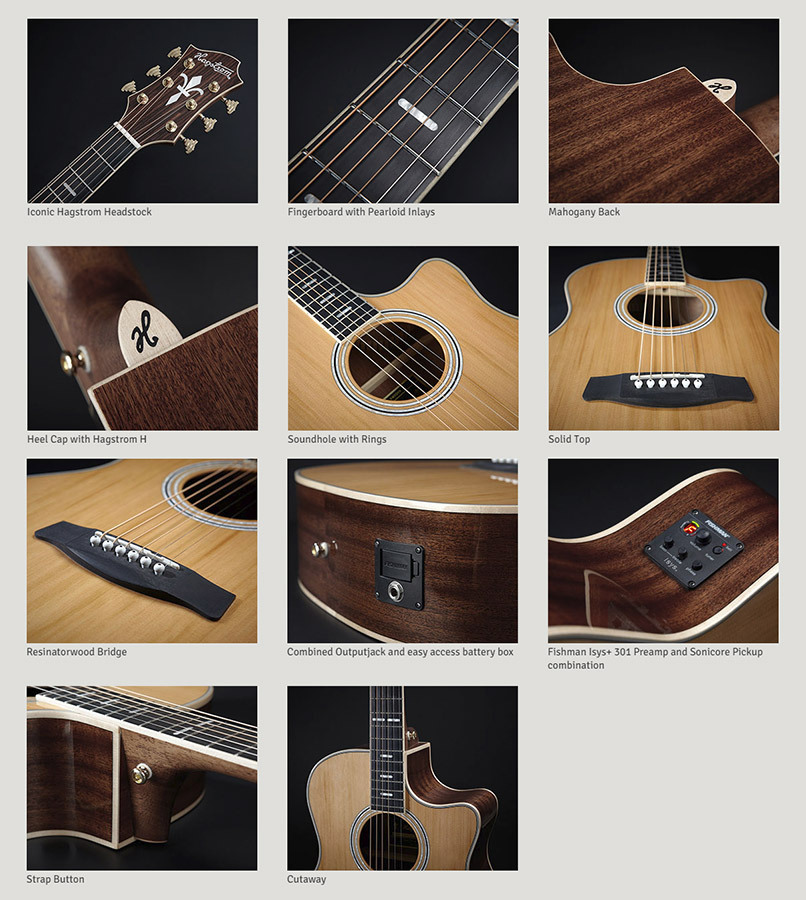 Beautifully designed cosmetic features such as headstocks, rosettes, tuners and other details, together with the finest of materials and Hagstrom's design innovation creates a range of acoustic guitars that are a fitting tribute to the legacy started nearly a century ago in Dalarna by Albin Hagstrom.