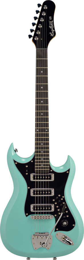 A comfortably profiled Canadian Maple neck is bolted to a hand-selected American Alder body insuring that the original attack and "bite" of the H-II and H-III is maintained. The classic 6-in-line Hagstrom headstock design, used for the first production of H-IIs and H-IIIs, has been slightly updated, and the "Vintage Tremar" has been re-engineered for functional improvements without sacrificing its original appearance.
