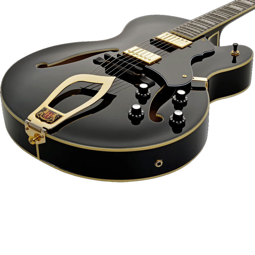 Right underneath the top part, where the two beautifully swept beams meet, it features a string claw for easy access and super comfortable string changes. Adorned with the legendary Hagstrom crest it truly is elegance defined.