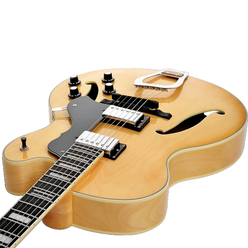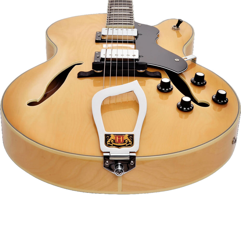 Right underneath the top part, where the two beautifully swept beams meet, it features a string claw for easy access and super comfortable string changes. Adorned with the legendary Hagstrom crest it truly is elegance defined.