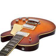 Moreover, further reinforcements are applied deep within the construction, ensuring the guitar's durability. Tuning stability is also crucial for musicians, and that's why each guitar is equipped with our newly designed higher ratio Hagstrom 19:1 locking tuners. This enables quick string changes and easy tuning adjustments on the fly, without sacrificing stability. These modern solutions provide musicians with peace of mind, allowing them to focus on their music and perform at their best, no matter what the situation is.