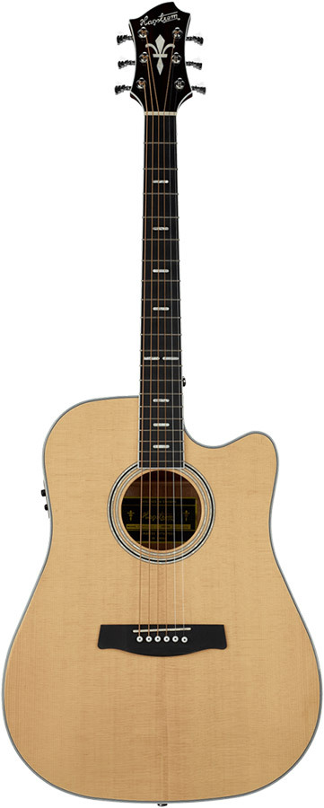 All Hagstrom acoustic-electric models are equipped with Fishman's professional quality ISYS 301 Plus preamp and Sonicore transducer system. Advanced features such as a built-in autochromatic tuner and Phase adjustment control provide the perfect support for Hagstrom's unique acoustic voice.