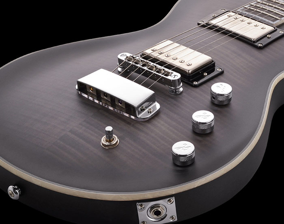 The body joins to a mahogany set neck utilizing a mortise and tenon neck joint with a 25.50" scale length, which naturally features our H-Expander truss-rod and Resinator fingerboard. Its sleek and "ultra-comfortable fast neck" is paralleled with our Custom 60 Alnico-5 pickups with their eloquent Aluminum Brushed covers, delivering the cutting voice that this instrument demands.