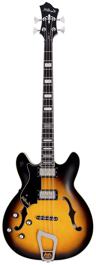 This meticulously crafted semi-hollow bass with a short 30.75-inch (781 mm) scale is fitted with Hagstrom's custom-voiced Dyna-Rail humbucking pickups. A brilliantly designed 6-way rotary switch allows switching between various humbucking and single-coil configurations for a dizzying array of tonal options: