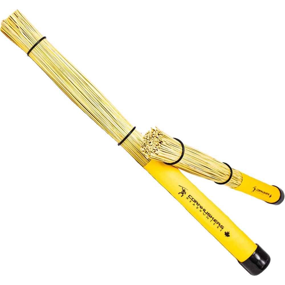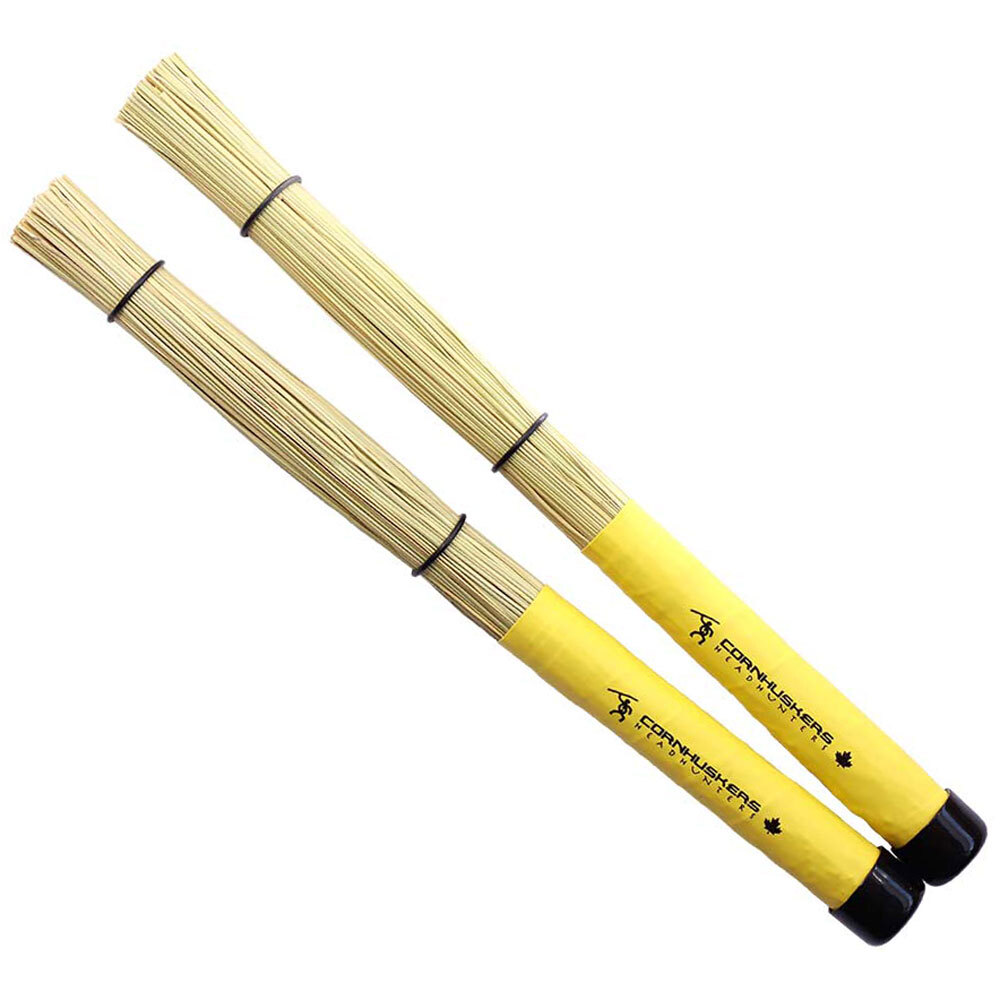 We take a 1-inch thick bundle of sorghum and flip it 180 degrees, bind it with strong thread to form a handle, add a comfortable grip, and finish with sound shaping O-rings. The thicker, stiffer strands from the "stem" on the striking end provide more cymbal attack and louder definition than the Soft Corn, which has the softer "flowering end" as the striking end.