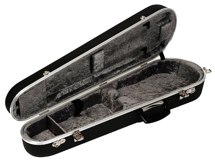 This Hiscox Shaped Full Size Violin Case Shaped Violin Case comes with 2 bow holders in the lid, box area for rosin etc., 'D' rings for attaching optional carrying strap plus velcro strap to hold shoulder rest within case.