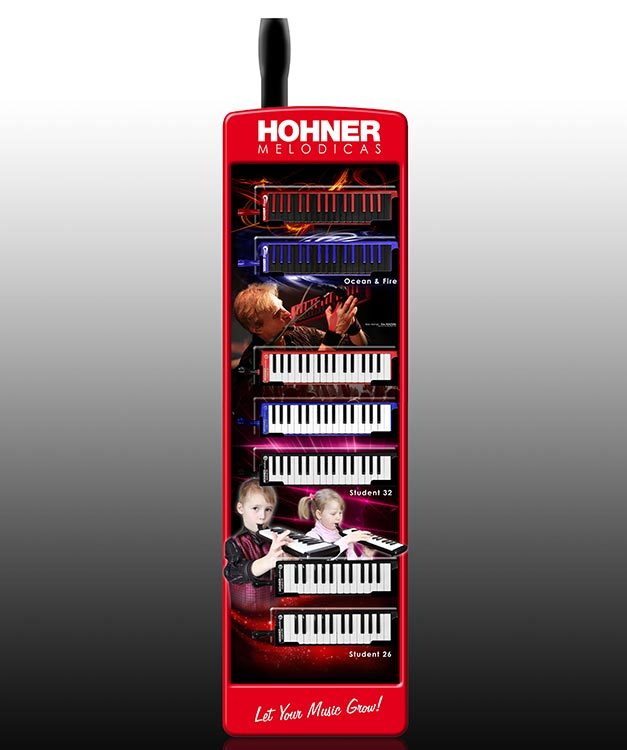 Hohner Melodica Retail Floor Display Stand. Displays 7 different models of Hohner melodicas to assist your store to merchandise this great instrument effectively. Ask your Pro Music Representative for details on how to get this great stand.