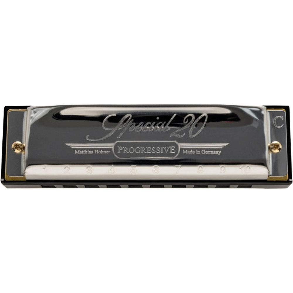 The instruments of Hohner's Progressive Line all set new standards in harmonica design: the Golden Melody, with its graceful 1950s retro look and tempered tuning, the Special 20, the world's first harmonica with recessed reed plates, which has inspired countless imitations, or the new Rocket, the loudest and most comfortable plastic body harmonica on the market today!