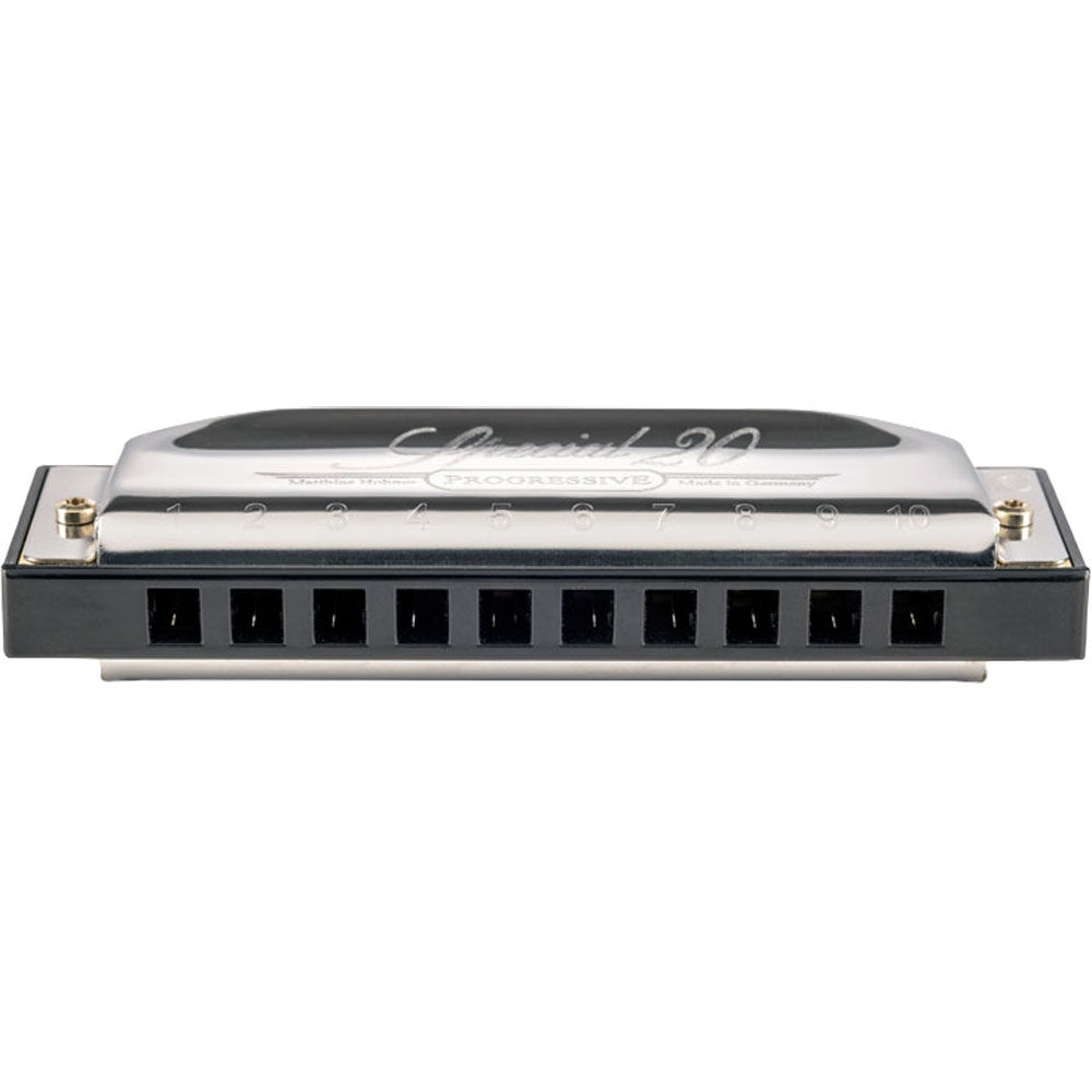 The instruments of Hohner's Progressive Line all set new standards in harmonica design: the Golden Melody, with its graceful 1950s retro look and tempered tuning, the Special 20, the world's first harmonica with recessed reed plates, which has inspired countless imitations, or the new Rocket, the loudest and most comfortable plastic body harmonica on the market today!