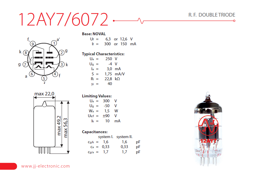 R.F. DOUBLE TRIODE - 12AY7 is a medium gain pre-amplifying double triode.