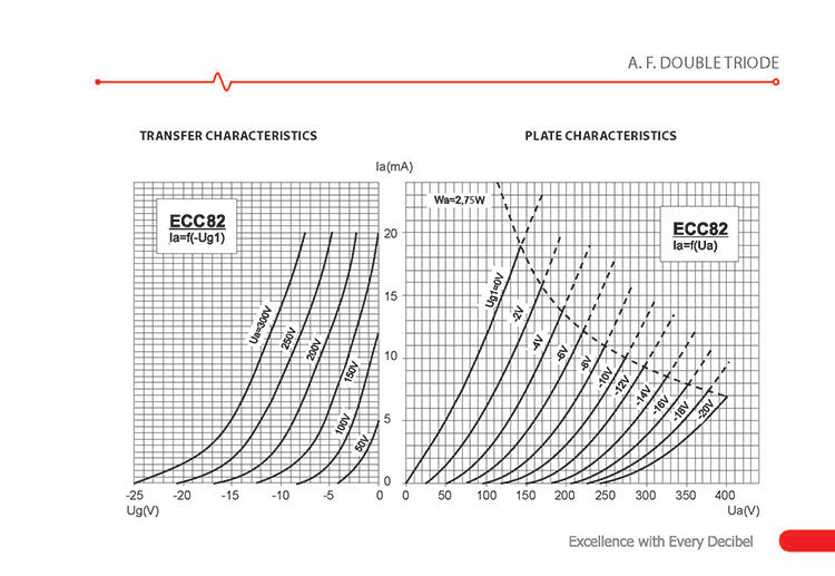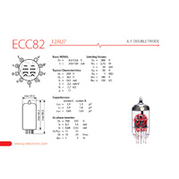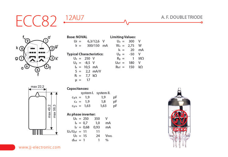 A.F. DOUBLE TRIODE - ECC82 is 12AU7 medium gain pre-amplifying double triode. Provides a very smooth sound with well-defined tones suitable for audio and guitar amplifiers.
