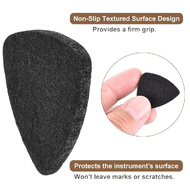 These felt picks are made of a high-density synthetic wool felt, soft and comfortable. The non-slip textured surface provides a firm grip, preventing slippage even with vigorous strumming. They are easy to control, won't leave marks or scratches, and protects the instrument's finish, ensuring durability.