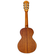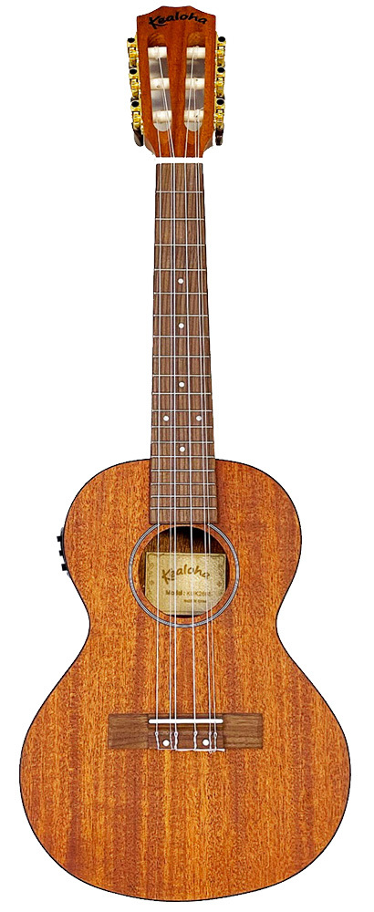 The Kealoha KU Series 6-String Acoustic/Electric ukulele features a Mahogany top with Mahogany back & sides in a Satin finish. Great look with wood binding and a concentric circle sound-hole decoration, an Okume satin finished neck with a 35mm bone nut and bone saddle This awesome uke also features gold classical guitar style geared machine heads with pearloid brown buttons, Walnut fingerboard, Walnut bridge and is strung with Aquila strings.