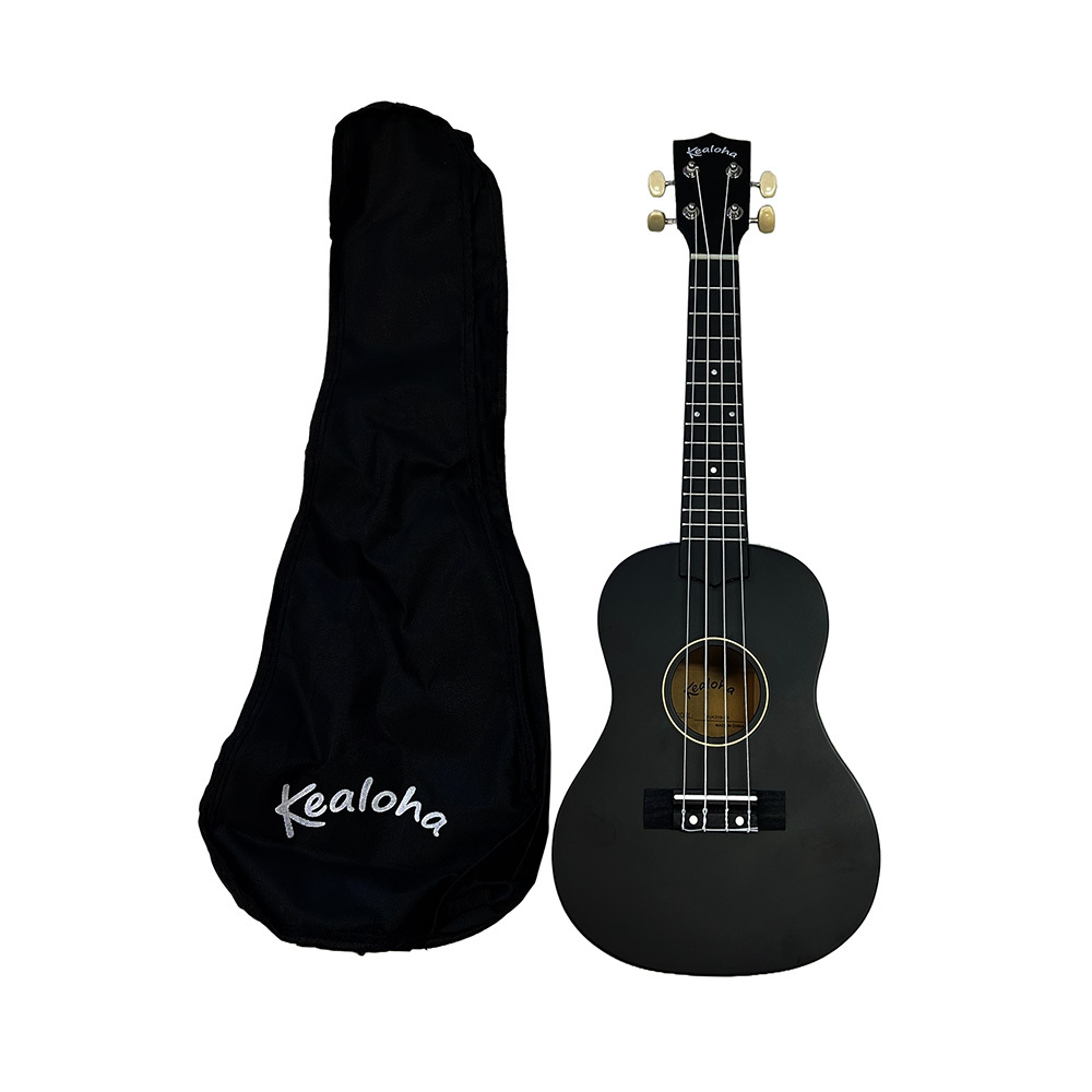 Kealoha Wooden Coloured Series Concert Ukulele with Bag in Black Satin Finish. Perfect for the beginner ukulele player it features tuneable machine heads, a pinned bridge and a colourful satin finish. Other colours available are Green, Pink, Orange, Natural, Blue or Red.