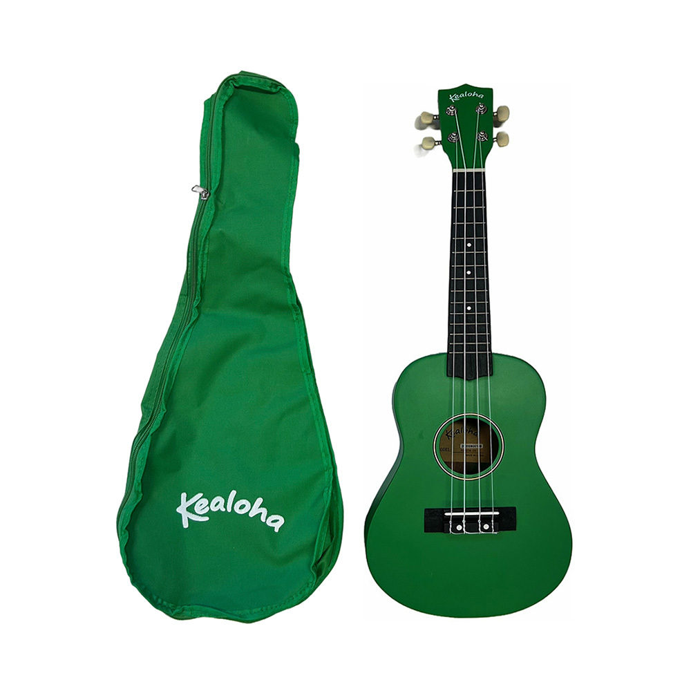 Kealoha Wooden Coloured Series Concert Ukulele with Bag in Green Satin Finish. Perfect for the beginner ukulele player it features tuneable machine heads, a pinned bridge and a colourful satin finish. Other colours available are Blue, Pink, Orange, Natural, Black or Red.