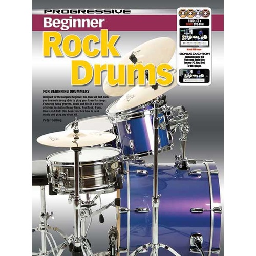 Progressive Beginner Rock Drums contains all you need to know to start learning to be a great rock drummer - in one easy-to-follow, lesson-by-lesson drum tutorial.