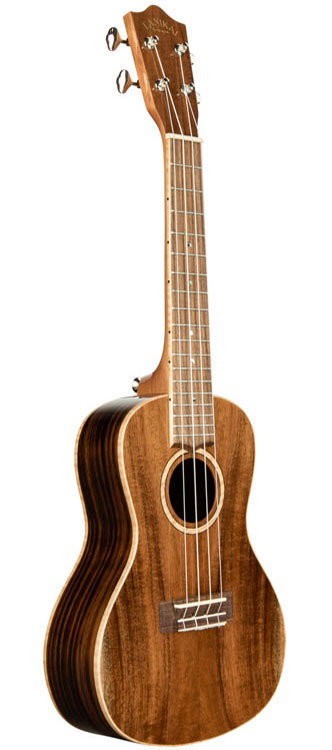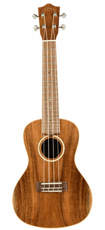 The ALL SOLID Acacia ukulele by Lanikai delivers dynamic new features such as a wider nut for player comfort, select figured wood, Grover open back tuners, wood marquetry, NuBone XB nut and saddle, D'Addario strings, glossy finish and a foam case.