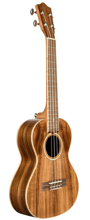 The ALL SOLID Acacia ukulele by Lanikai delivers dynamic new features such as a wider nut for player comfort, select figured wood, Grover open back tuners, wood marquetry, NuBone XB nut and saddle, D'Addario strings, glossy finish and a foam case.